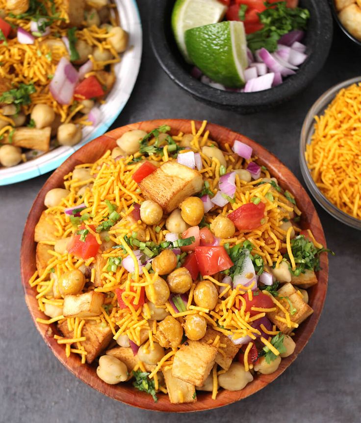 Aloo Chana Chaat is a tangy and spicy mix of crispy potatoes and chickpeas, topped with refreshing yogurt and flavorful chutneys.