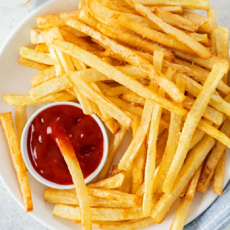 Indulge in our French fries, golden and crispy on the outside with a perfectly fluffy interior, seasoned to perfection for the ultimate crispy snack.