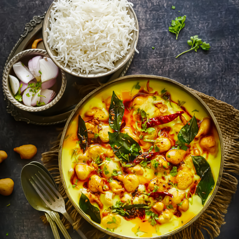 Indulge in the rich, tangy flavor of our Kadi, where smooth yogurt-based gravy is perfectly spiced and studded with golden-fried besan dumplings.
