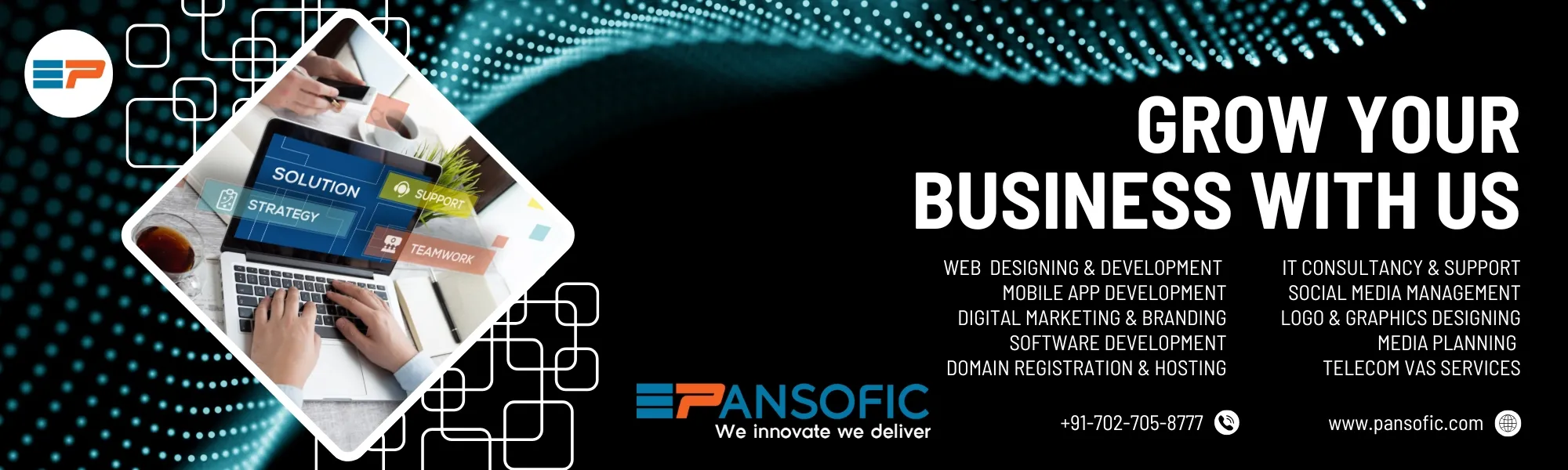 At Pansofic Solutions, we are dedicated to helping businesses succeed in the digital world. As a top provider of digital marketing, web development, mobile app development, web maintenance, and software solutions, we focus on delivering innovative and results-oriented strategies that align with your business objectives or goals. Whether you are a new startup, an MSME, or a well-established company, we are here to turn your vision into a vibrant digital experience.